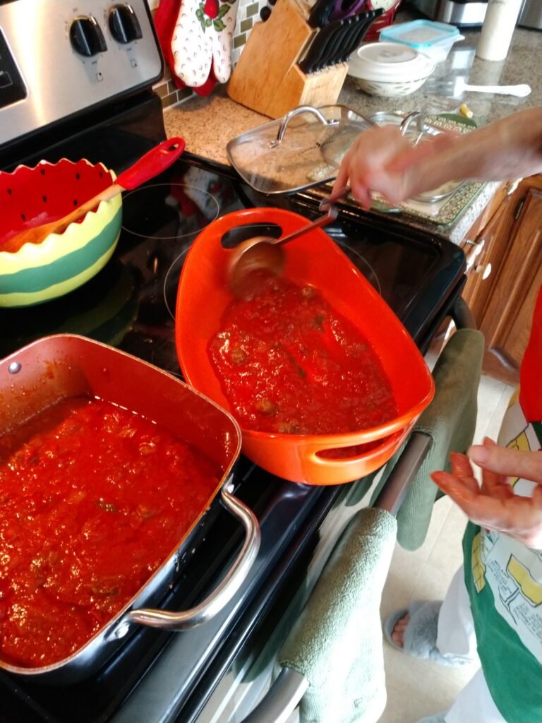 The are many variations of this dish. Instead of a plain tomato sauce, you could use a meat sauce (bolognese sauce) or a sauce with small meatballs (like we did here). You could even use larger meatballs if you wanted to. Larger meatballs have a recipe all their own and I’ll post it in a future blog post.