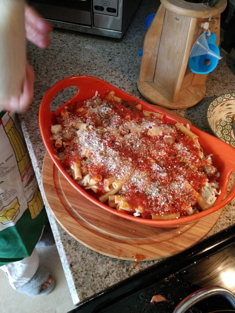 Baked Ziti is a hearty meal great for a lazy Sunday afternoon when you can just lay back and relax. It’s is also one of those meals that is just as good, if not better, as a reheated leftover.